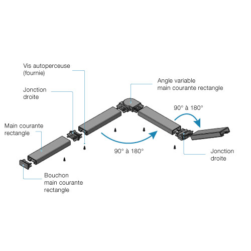 Les longueurs sont reliées entre elles par des jonctions ou des angles variables (angle de 90 à 180°).