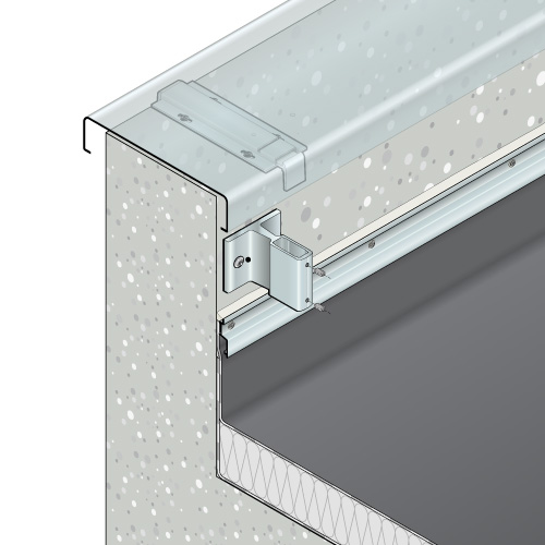 The A60 shoe is installed to the inside of a parapet wall. An extension of up to 60 mm is allowed in relation to the wall. It can also be used on façade. It is compatible with the use of a Couvernet aluminium coping.