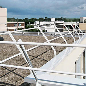 The Barrial safety guardrails is a permanent and collective protection system agains falls from heights of flat roofs. It is in accordance with regulatory constraints (norms NF EN ISO 14122-3, NF E 85-015 and NF EN 13374 A class)