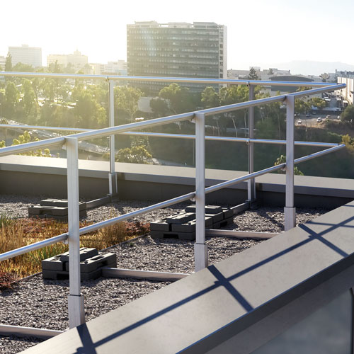 Barrial free-standing premium®: Aluminium height-adjustable edge protection for flat roofs without public access