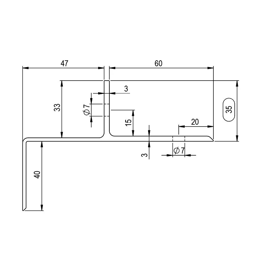 | Diamètre 7 mm tous les 300 mm à 20 mm du bord du profil | |