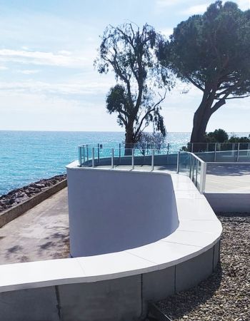 Pose de couvertine Couvernet® arrondi cintré à facettes, à la piscine Roquebrune-Cap-Martin